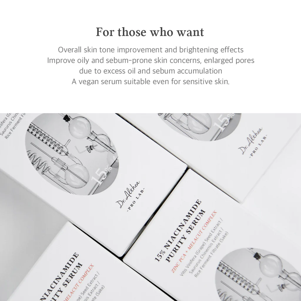 Νιασιναμίδη (Βιταμίνη B3) 15 %: Βασικό συστατικό φωτεινότητας και εξισορρόπησης του τόνου του δέρματος. Επιπλέον, βοηθά στη μείωση δυσχρωμιών, στην ομοιομορφία του χρώματος και στην ενίσχυση του φραγμού της επιδερμίδας.
