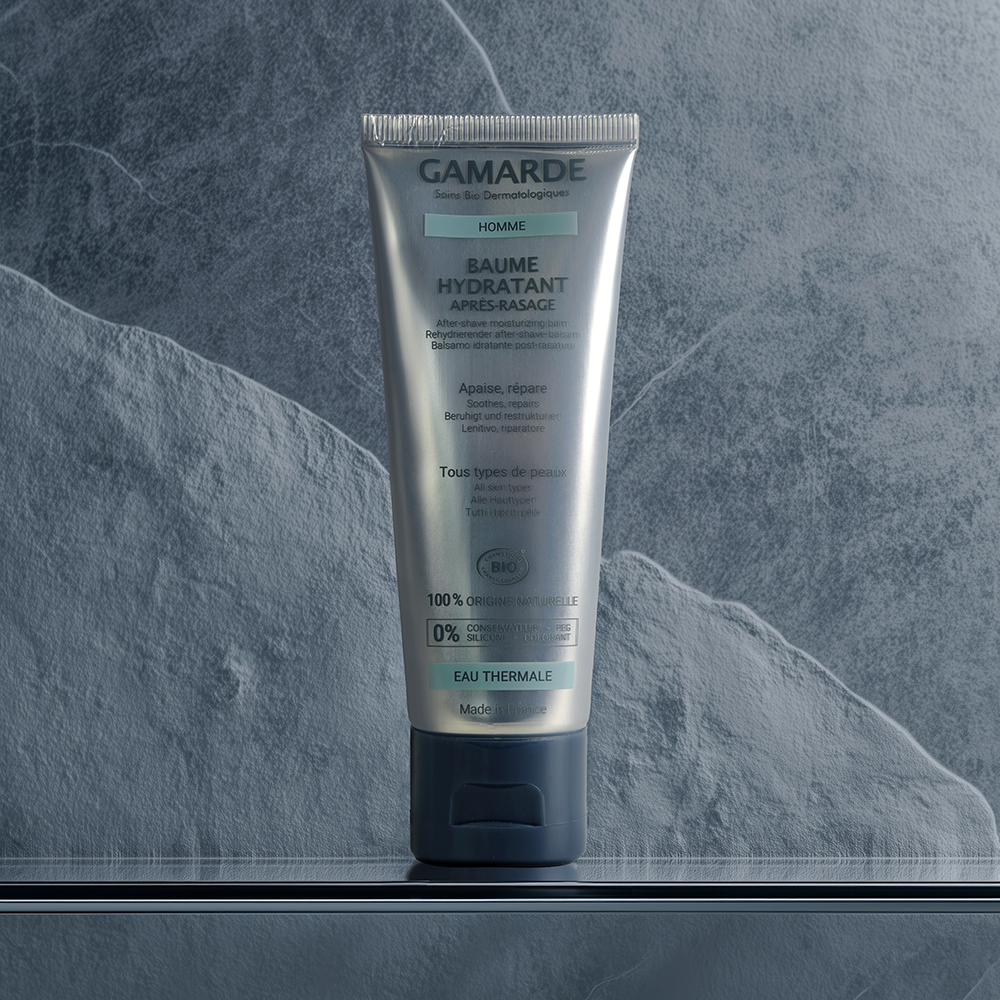 Gamarde aqua (Gamarde Water), Mentha piperita (Peppermint) leaf water*, parfum (Fragrance). Glycerin, Argania spinosa kernel oil*, C14-22 alcohols, Nigella sativa seed oil*. glyceryl stearate citrate, C12-20 alkyl glucoside, Aloe ferox leaf extract, Helianthus annuus (Sunflower) seed oil*, glyceryl caprylate, xanthan gum, Panax ginseng root extract*, Menthol*, Bisabolol, Melaleuca alternifolia (Tea Tree) leaf oil*, Lavandula hybrida oil*, tocopherol, Pelargonium graveolens flower oil*, Citrus aurantium amara (Bitter Orange) leaf/twig oil*, sodium hyaluronate, citric acid, citral°, citronellol°, geraniol°, limonene°, linalool°. *ingrédient d’origine Biologique °ingrédient naturellement présent dans le parfum et les huiles essentielles