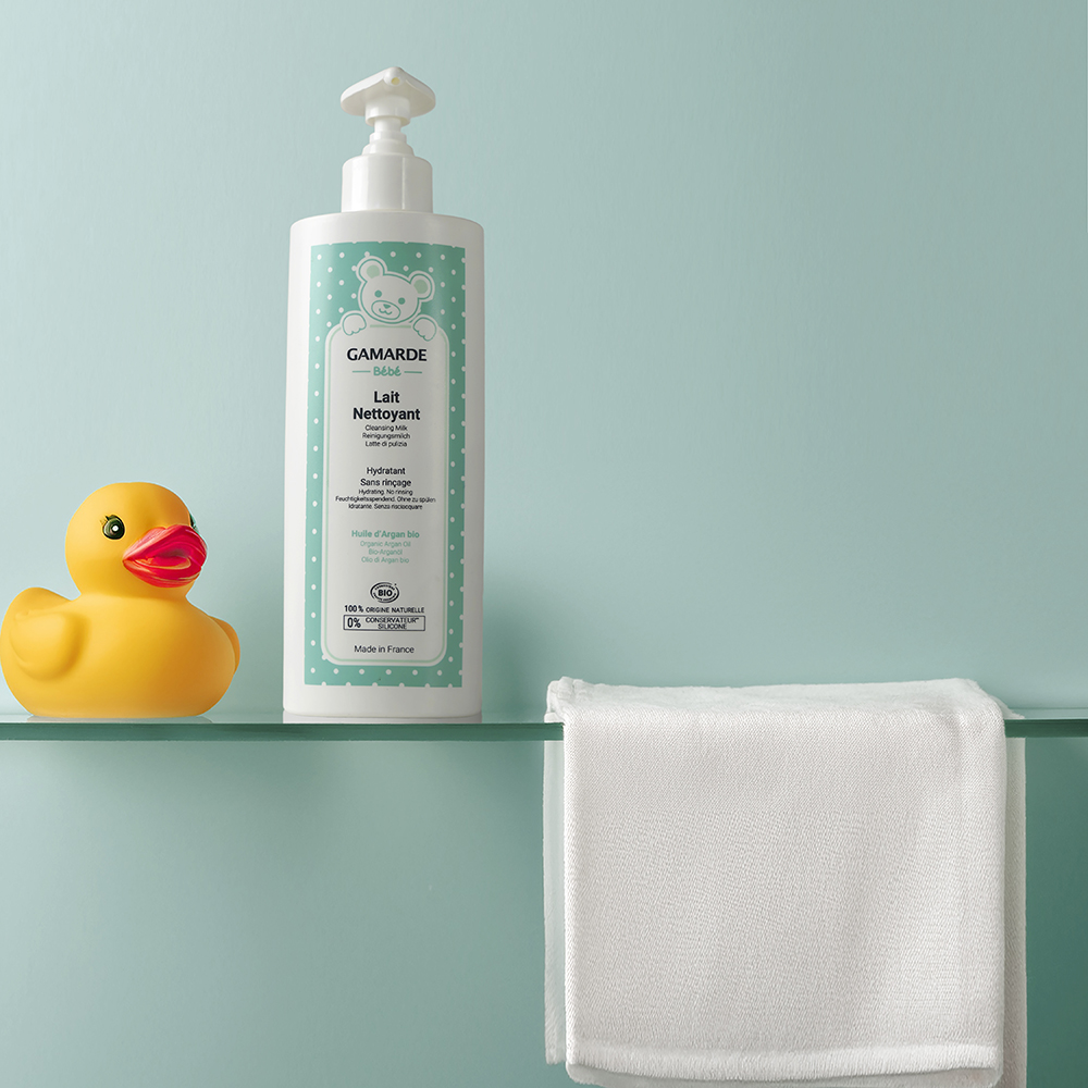 Εμπλουτισμένο με βιολογικό έλαιο Argan, θερμικό νερό Gamarde-les-Bains και βιολογική γλυκερίνη, προσφέρει βαθιά θρέψη και άμεση απαλότητα, βοηθώντας στη διατήρηση της φυσικής ισορροπίας του δέρματος. Επιπλέον, η απαλή, γαλακτώδης υφή του αφήνει την επιδερμίδα του μωρού καθαρή, δροσερή και μεταξένια, χωρίς ίχνος λιπαρότητας.
