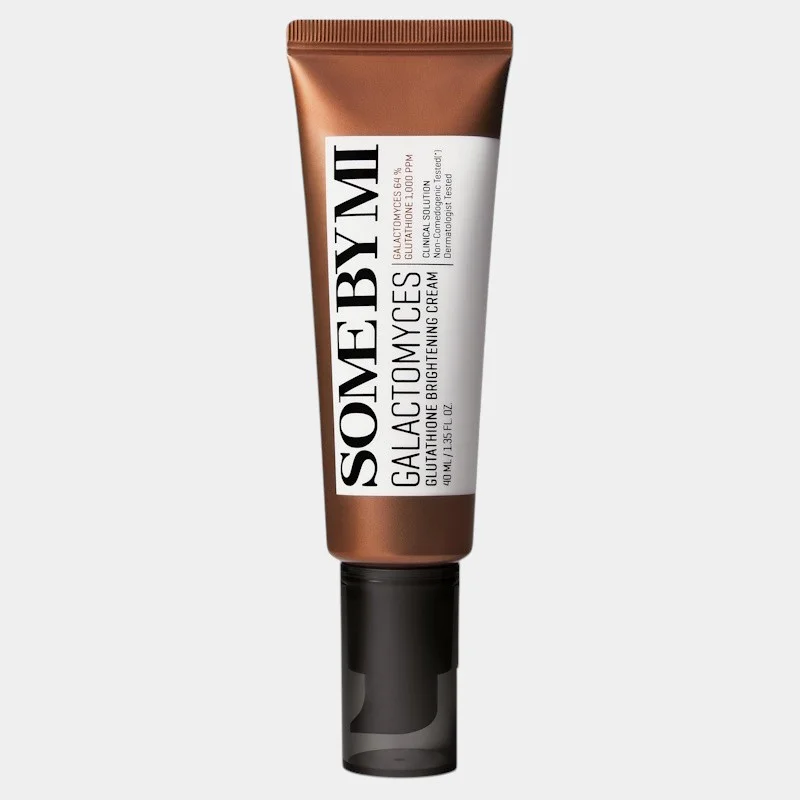 Η Galactomyces Glutathione Brightening Cream 40 ml της SOME BY MI είναι μια ενυδατική και λευκαντική κρέμα προσώπου με στόχο να βελτιώσει τη φωτεινότητα του δέρματος. Επιπλέον, βελτιώνει την ομοιομορφία του τόνου και ενισχύει την υφή του δέρματος. Ακόμη, βοηθά στη μείωση της θαμπής όψης και των κηλίδων και προσφέρει έντονη ενυδάτωση. Επιπρόσθετα, διατηρεί τα σωστά επίπεδα υγρασίας στην επιδερμίδα, χάρη στα ενυδατικά και μαλακτικά συστατικά. Τέλος, ενισχύει τον δερματικό φραγμό, ενυδατώνει τα βαθύτερα στρώματα του δέρματος και βοηθά στη διατήρηση της υγείας της επιδερμίδας. Επίσης, περιέχει αντιοξειδωτικά στοιχεία (όπως γλουταθειόνη, βιταμίνη C παράγωγα) που προστατεύουν από τις περιβαλλοντικές συνθήκες και βοηθούν στη μείωση της οξειδωτικής φθοράς. Η σύνθεσή της περιλαμβάνει επίσης κεραμίδια και λιπίδια τα οποία “σφραγίζουν” την υγρασία στην επιδερμίδα.