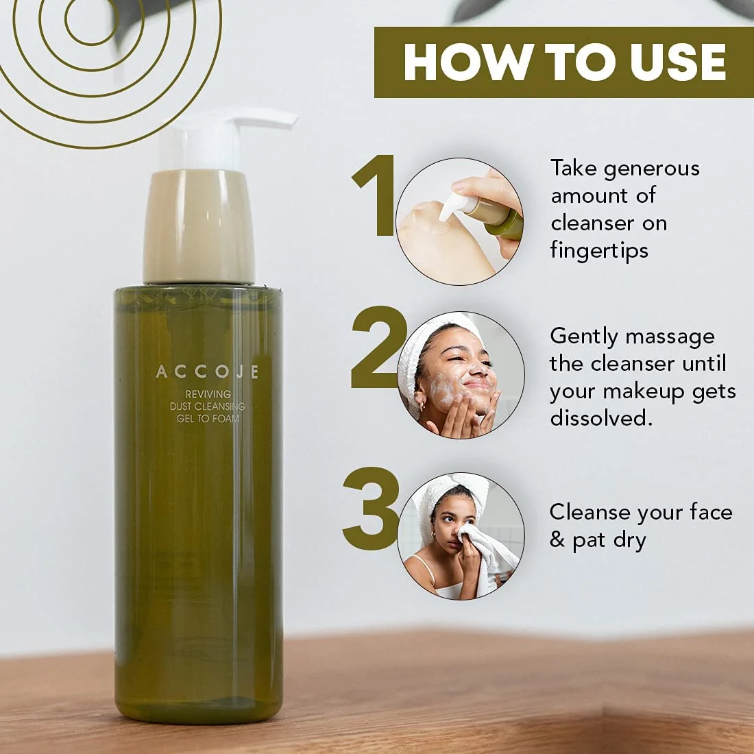 Αρχικά αντλούμε μια κατάλληλη ποσότητα σε στεγνά χέρια. Στη συνέχεια, κάνουμε απαλό μασάζ πάνω σε στεγνό δέρμα για περίπου 30 δευτερόλεπτα. Έπειτα, βρέχουμε με χλιαρό νερό τα χέρια μας -για γαλακτωματοποίηση – και κάνουμε για λίγα ακόμη δευτερόλεπτα μασάζ ώστε να «λιώσει» εντελώς όλες τις ακαθαρσίες. Τέλος, ξεπλένουμε το πρόσωπο με χλιαρό νερό.