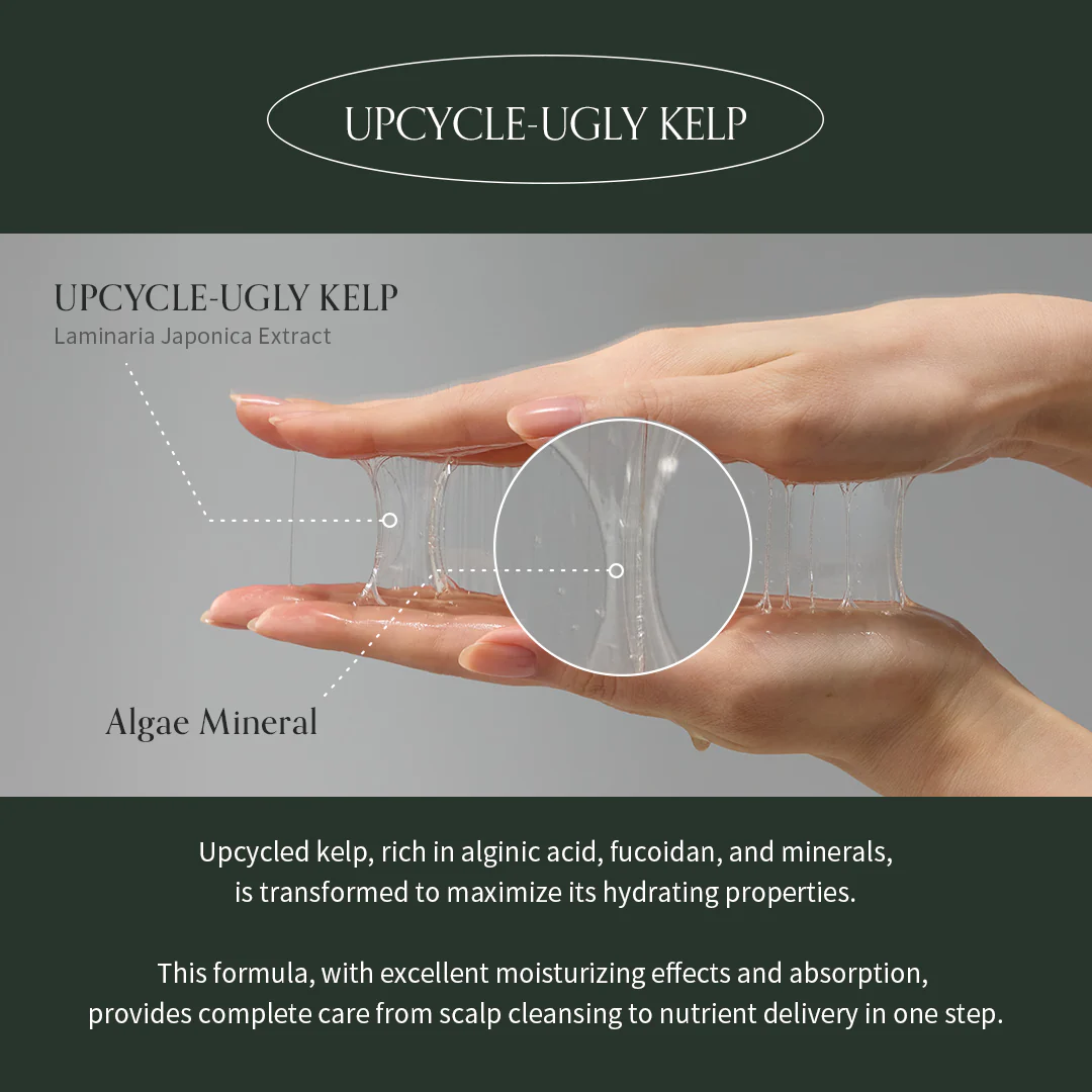 Η φόρμουλα αξιοποιεί μια φιλική προς το περιβάλλον μέθοδο εκχύλισης Cytorrhysis (απόδοση άνω του 90%), η οποία επιτρέπει την αποτελεσματική συλλογή ενεργών θρεπτικών συστατικών από Upcycled Kelp. Με την επαναξιοποίηση εγχώριων φυκιών που έχουν υποστεί φυσική φθορά ή θραύση, η σύνθεση προσφέρει υψηλή συγκέντρωση μεταλλικών στοιχείων που καταπραΰνουν και αναζωογονούν το ευαίσθητο τριχωτό με βιώσιμο τρόπο.