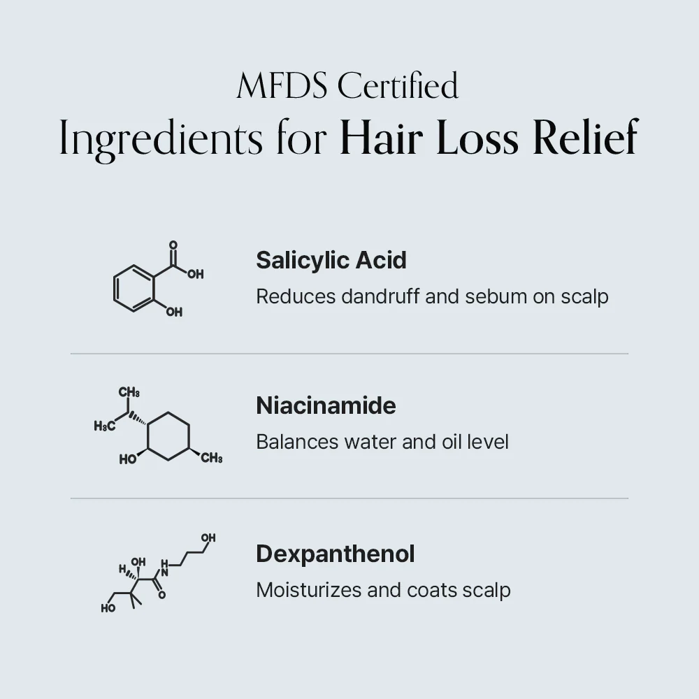 Λειτουργικό μείγμα Σαλικυλικού Οξέος, Νιασιναμίδης και Πανθενόλης σχεδιασμένο να ανακουφίζει από συμπτώματα τριχόπτωσης. Αυτά τα skin-identical θρεπτικά στοιχεία υποστηρίζουν τον φυσικό φραγμό του τριχωτού και διατηρούν την ισορροπία υγρασίας για ένα υγιές περιβάλλον ανάπτυξης των μαλλιών.Σύμπλεγμα Τριπλής Απολέπισης Οξέων (AHA, BHA & LHA)