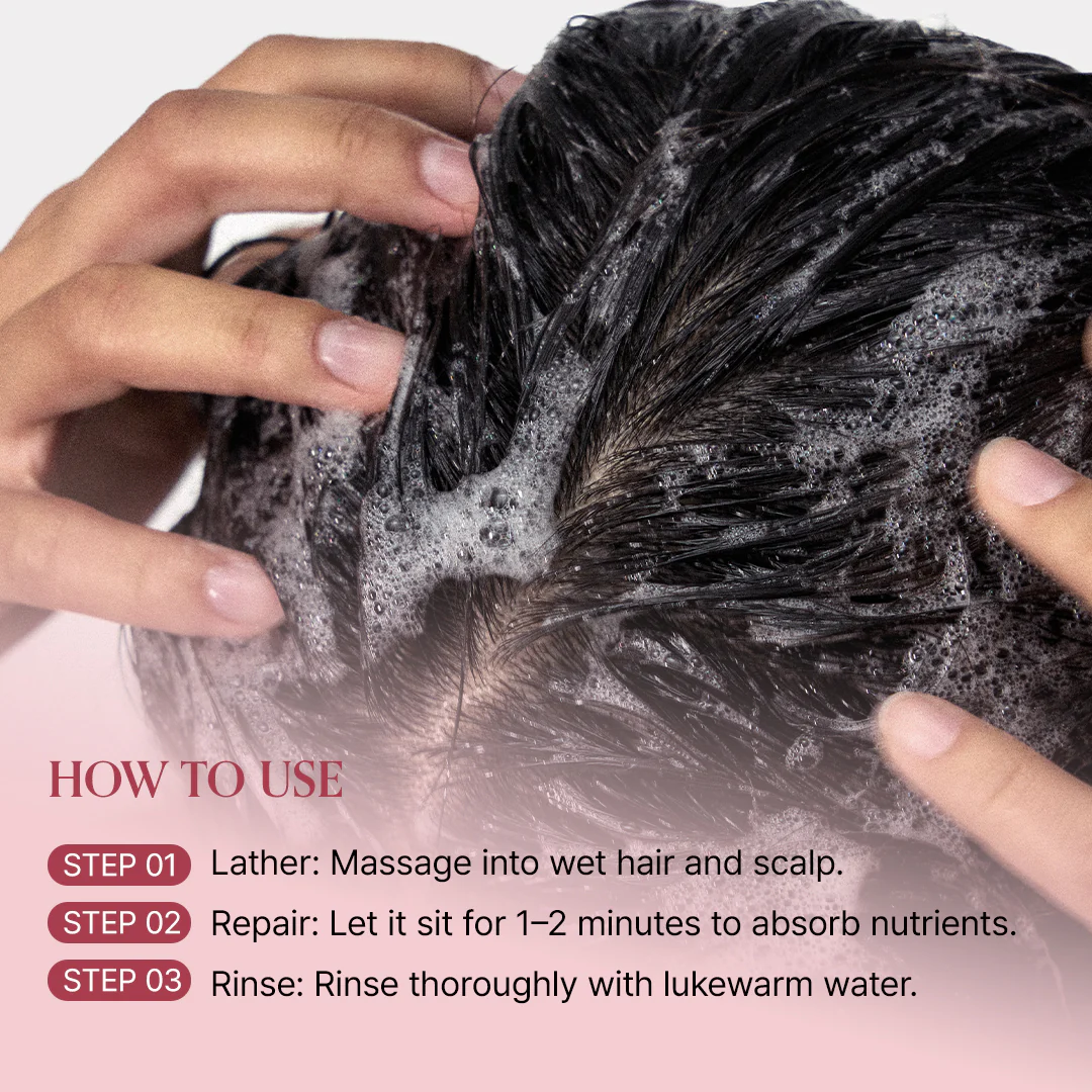 Αφήστε τον αφρό να παραμείνει στα μαλλιά για τουλάχιστον 5 δευτερόλεπτα, ώστε το σύστημα Seaweed Protein Bonding να βοηθήσει στην επανασύνδεση των σπασμένων κερατινικών δεσμών της τρίχας.Βήμα 4: Ξέβγαλμα & Συνδυασμός