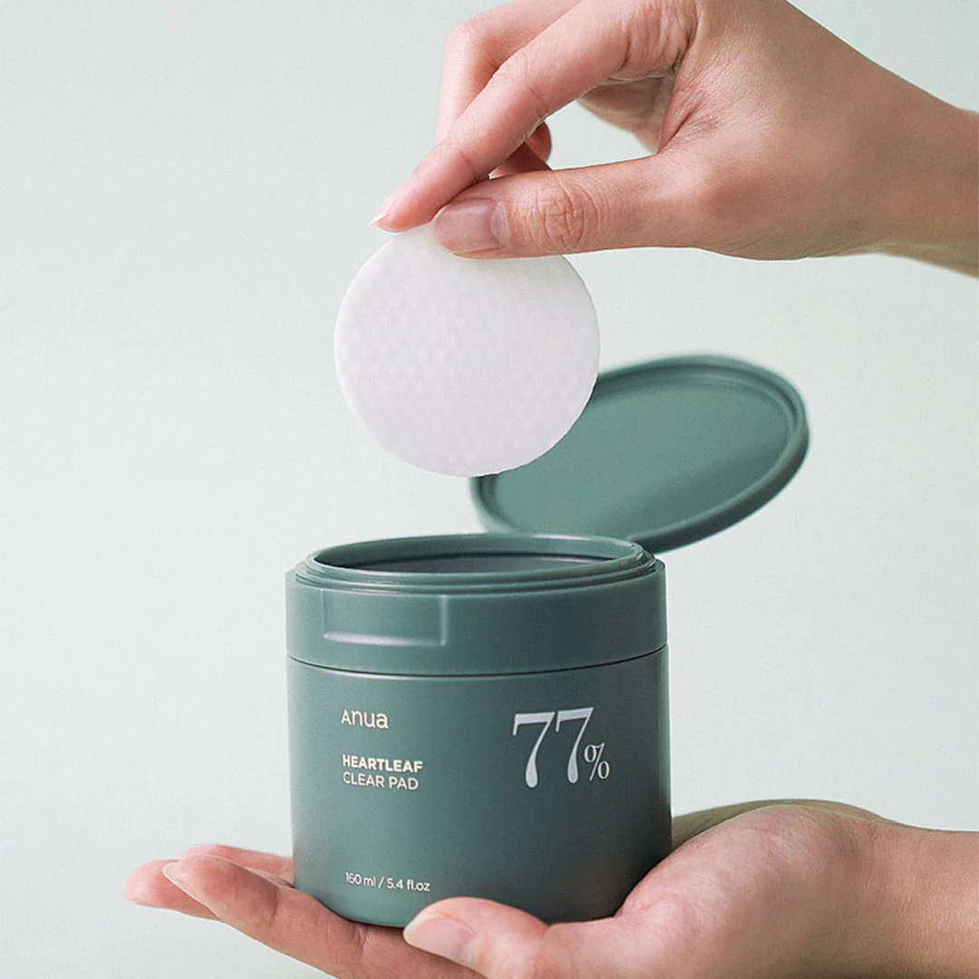Μετά τον καθαρισμό εφαρμόζουμε το Heartleaf 77% Clear Pad στην πρωινή και την βραδινή ρουτίνα περιποίησης της επιδερμίδας μας. Μπορούμε να χρησιμοποιούμε καθημερινά το Anua Heartleaf 77% Toner Pad. Χρησιμοποιούμε την ανάγλυφη πλευρά για να κάνουμε απολέπιση και να αφαιρέσουμε τα νεκρά κύτταρα του δέρματος και, στη συνέχεια, χτυπάμε απαλά για να ενισχύσουμε την απορρόφηση.
