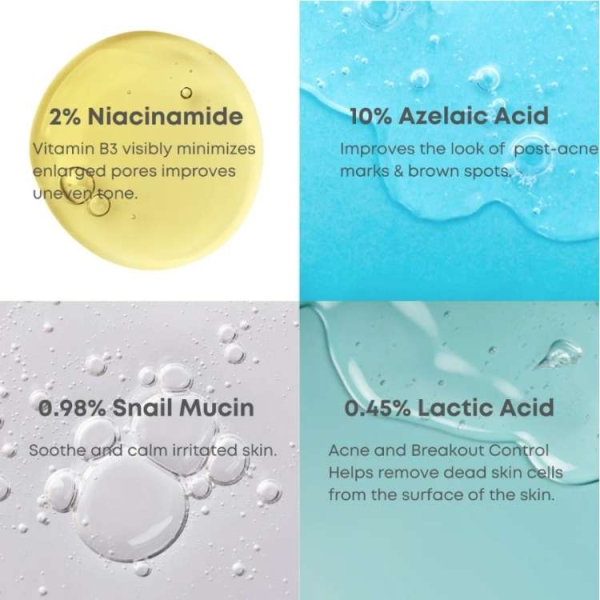 Το NINE LESS A-Control 10% Azelaic Acid Serum συμβάλλει στη μείωση των ατελειών και των σημαδιών μετά από ακμή, ενώ παράλληλα βοηθά στη βελτίωση του ανομοιόμορφου τόνου της επιδερμίδας. Επιπλέον, συμβάλλει στον έλεγχο της λιπαρότητας και στη μείωση της εμφάνισης των πόρων, ενώ ταυτόχρονα προσφέρει ήπια απολέπιση και ενυδάτωση. Με τη συστηματική χρήση, η επιδερμίδα δείχνει πιο καθαρή, πιο λεία και πιο ισορροπημένη.