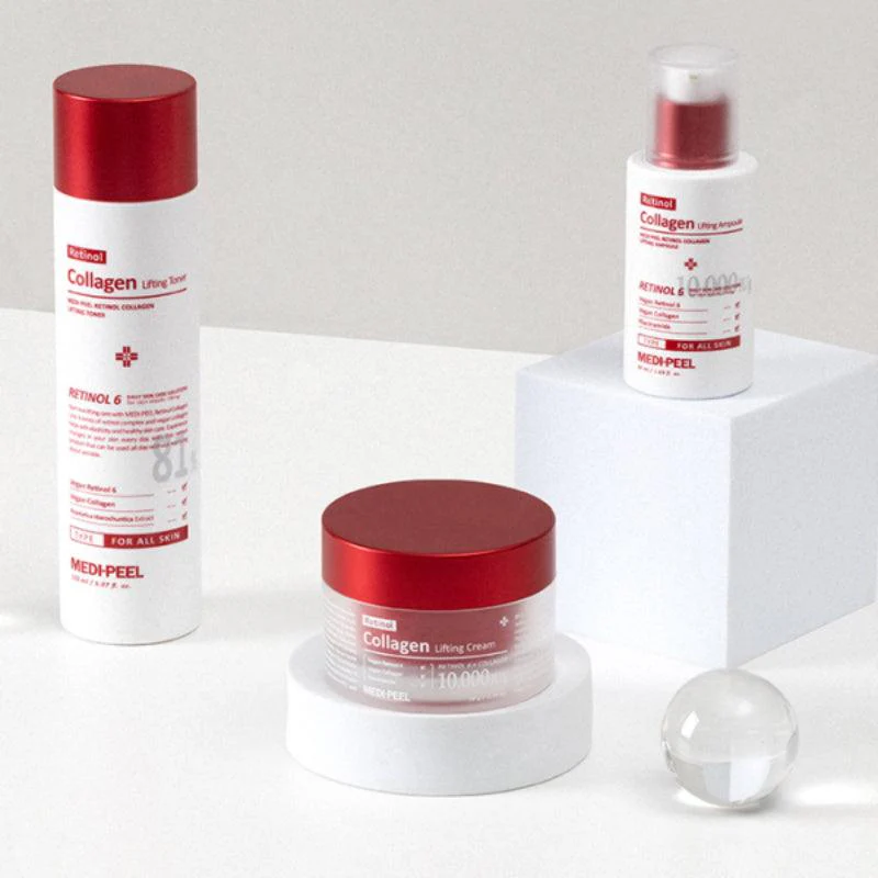 Η Retinol Collagen Lifting cream περιέχει 6 τύπους ρετινόλης: παλμιτική ρετινόλη (10. 000 IU / g), ρετινόλη, αμφιβληστροειδής, ρετινυλορετινοϊκή, γρανιενεργό ρετινοειδές, σιλυβίνη (φυτική ρετινόλη από γαϊδουράγκαθο). Επιπλέον , περιέχει 2 τύπους κολλαγόνου χαμηλού μοριακού βάρους για ανυψωτικό αποτέλεσμα.